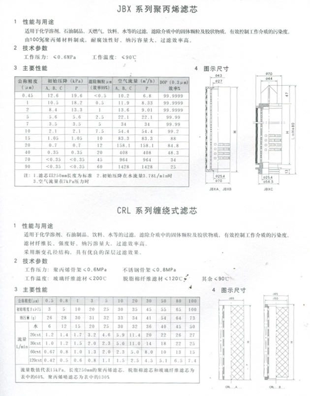 缠绕式滤芯 聚丙烯滤芯系列 CRL JBL